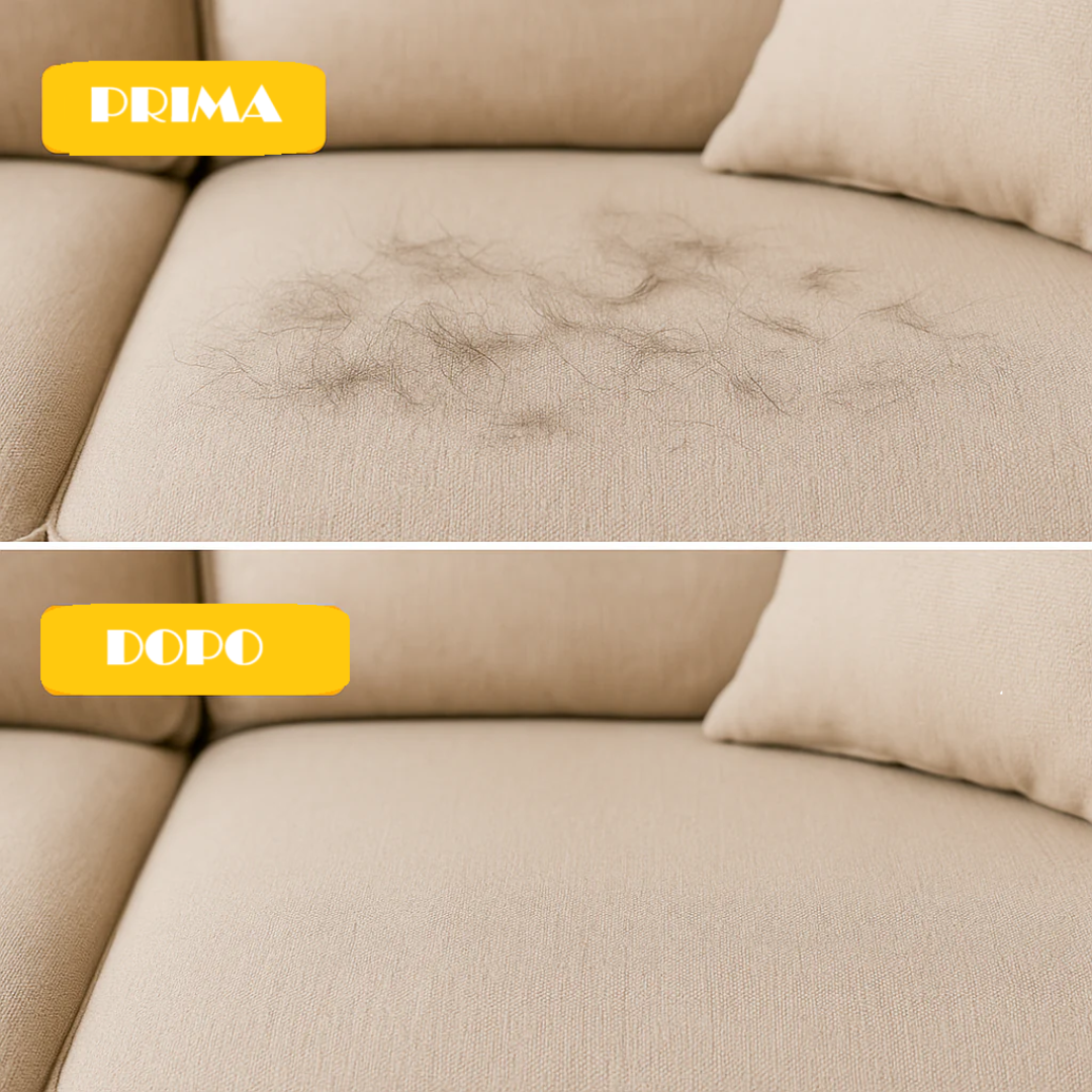 Efficace su ogni superficie: divani, cuscini, tappeti, tende, sedili auto e abbigliamento.